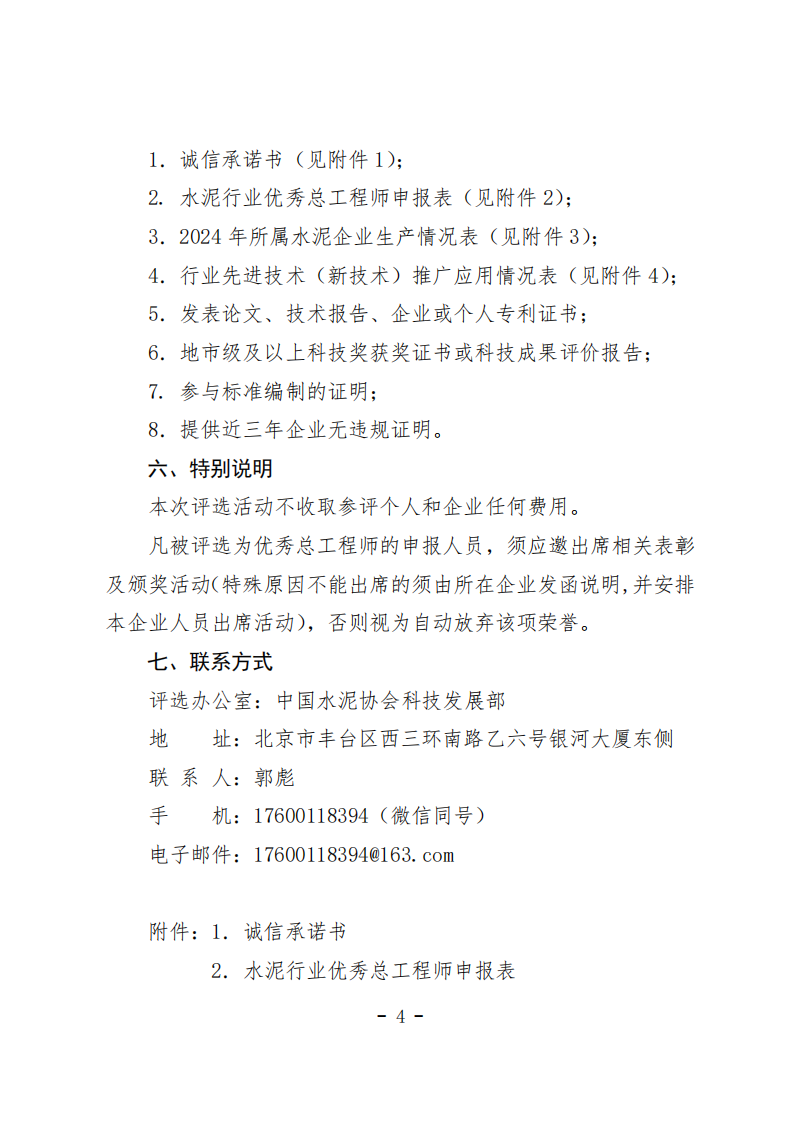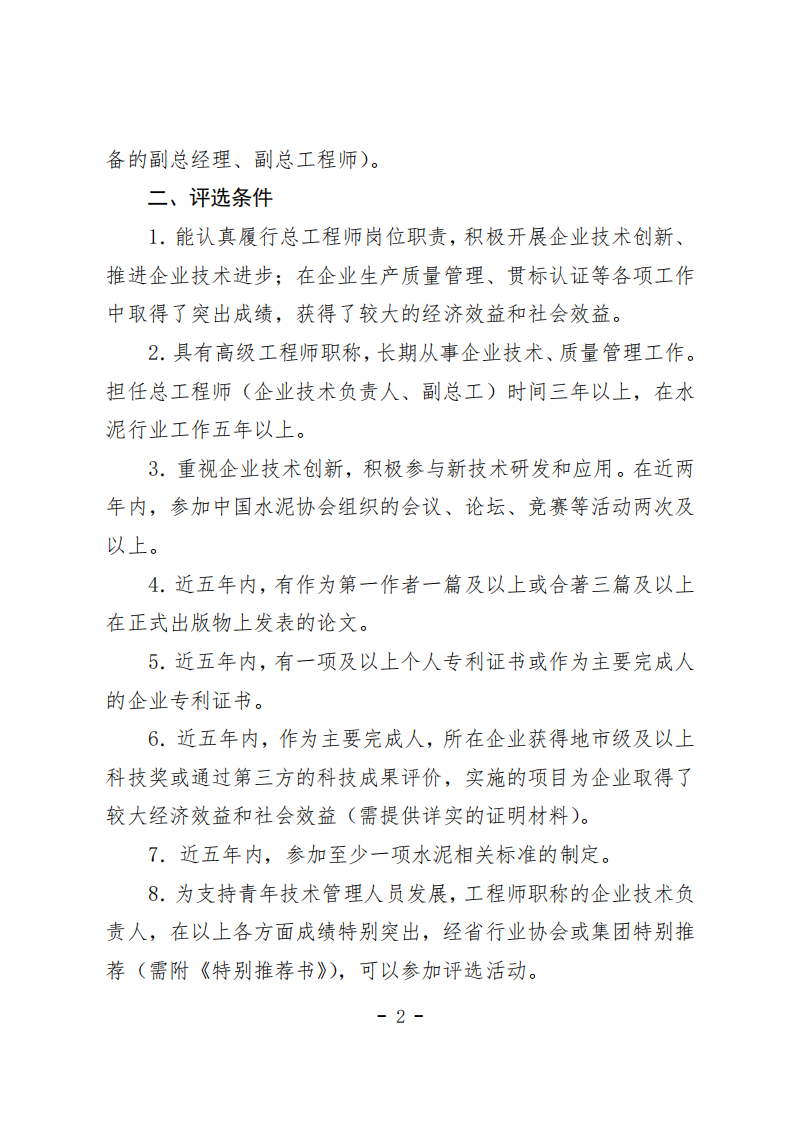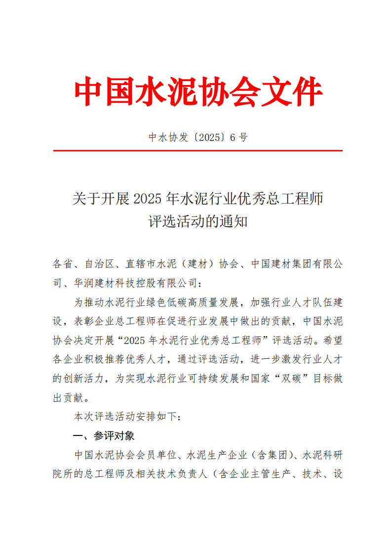 關于開展2025年水泥行業優秀總工程師評選活動的通知