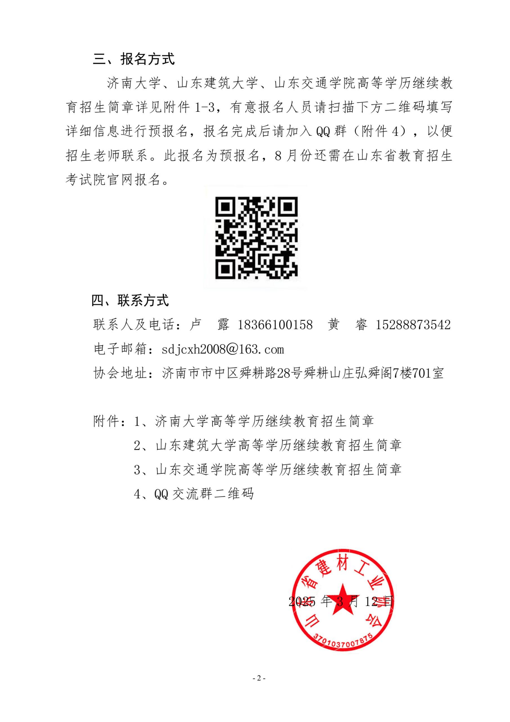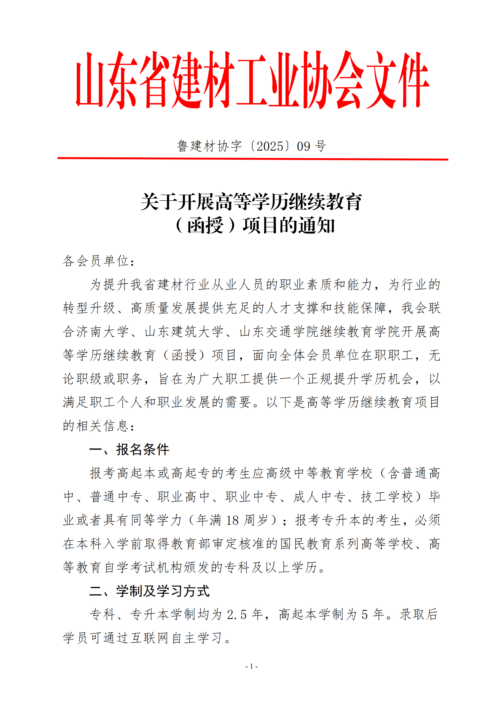 魯建材協字〔2025〕09 號關于開展高等學歷繼續教育(函授)項目的通知 (含附件)