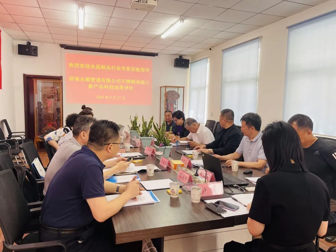 2025年5月17日,山東省建材工業(yè)協(xié)會(huì)組織并邀請(qǐng)北京市政工程研究院、中國(guó)混凝土與水泥制品協(xié)會(huì)、國(guó)家水泥制品節(jié)能技術(shù)中心、蘇州混凝土水泥制品研究院等相關(guān)部門和機(jī)構(gòu)專家,召開了由濟(jì)南永順管道有限公司完成的“不銹鋼承插口鋼筋混凝土管研發(fā)與應(yīng)用”項(xiàng)目成果評(píng)價(jià)會(huì)。對(duì)濟(jì)南永順管道有限公司研發(fā)的不銹鋼承插口鋼筋混凝土管進(jìn)行新產(chǎn)品科技成果現(xiàn)場(chǎng)評(píng)價(jià),并對(duì)不銹鋼與鋼筋混凝土管道的結(jié)合、應(yīng)用及推廣等技術(shù)問(wèn)題進(jìn)行了交流和討論。與會(huì)專家全流程觀摩了不銹鋼承插口鋼筋混凝土管道生產(chǎn)、制作、養(yǎng)護(hù)過(guò)程,并現(xiàn)場(chǎng)見證了不銹鋼承插口管道接口閉水試驗(yàn)和管體閉水試驗(yàn)。